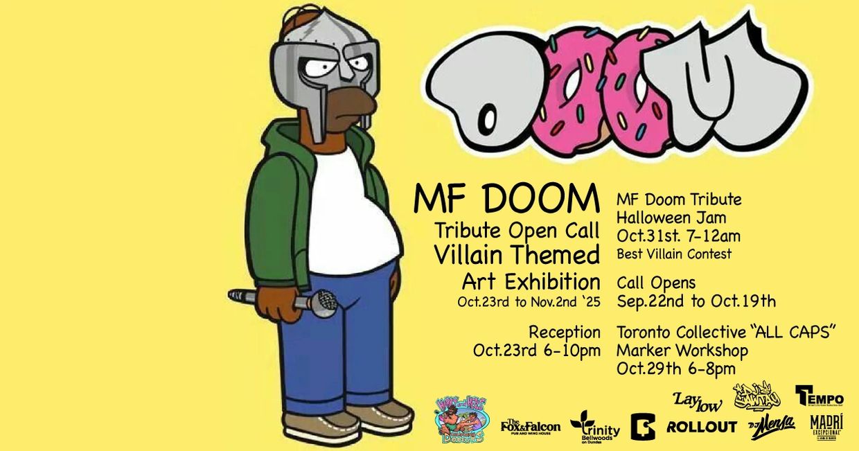 As a tribute to the worlds greatest villain and your favorite MC’s favourite MC, we bring you a Villain themed open call art exhibition in remembrance of MF DOOM. This art exhibition is a collaboration between Worth gallery, Toronto Collective, Rollout and Madri.